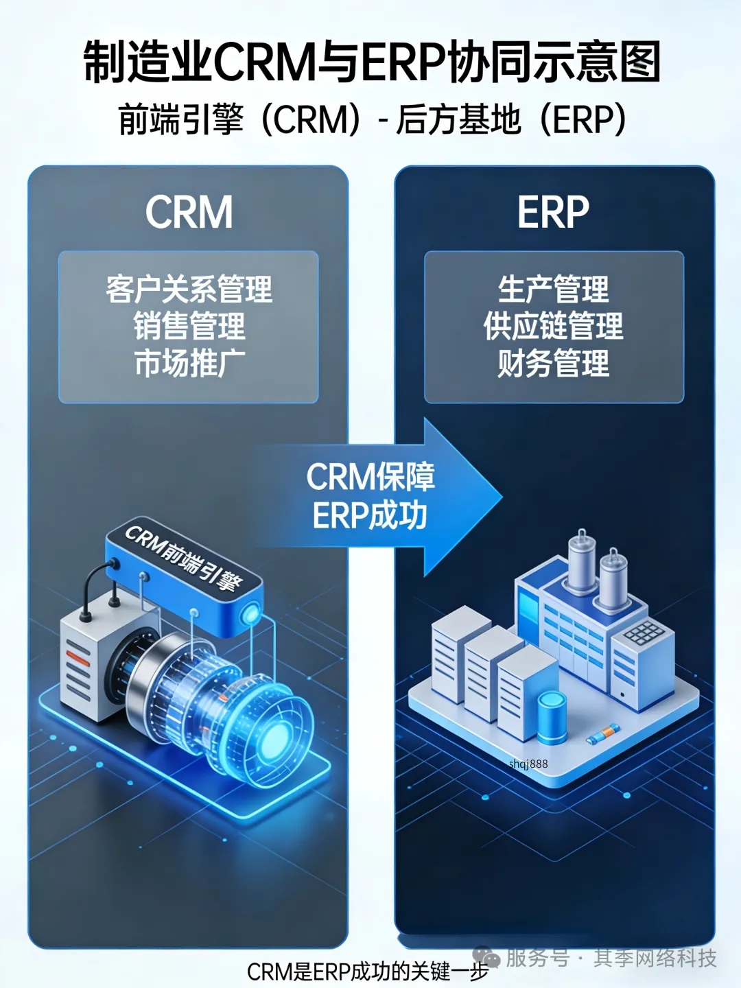 真正的数字化转型不是“先上A再上B”的线性过程,而是“前后端协同规划”的系统工程。但从落地节奏看,CRM的轻量化、快速见效特性,能为后续ERP实施打下坚实基础: